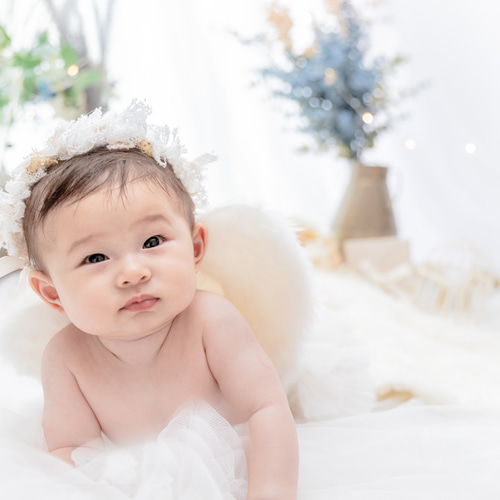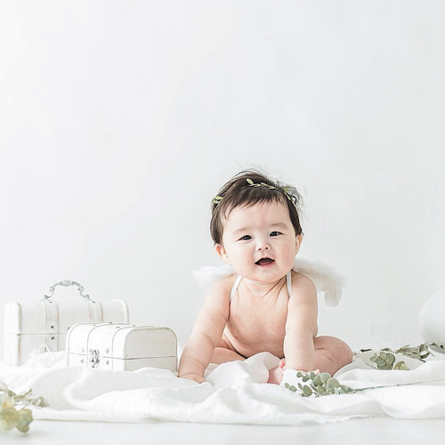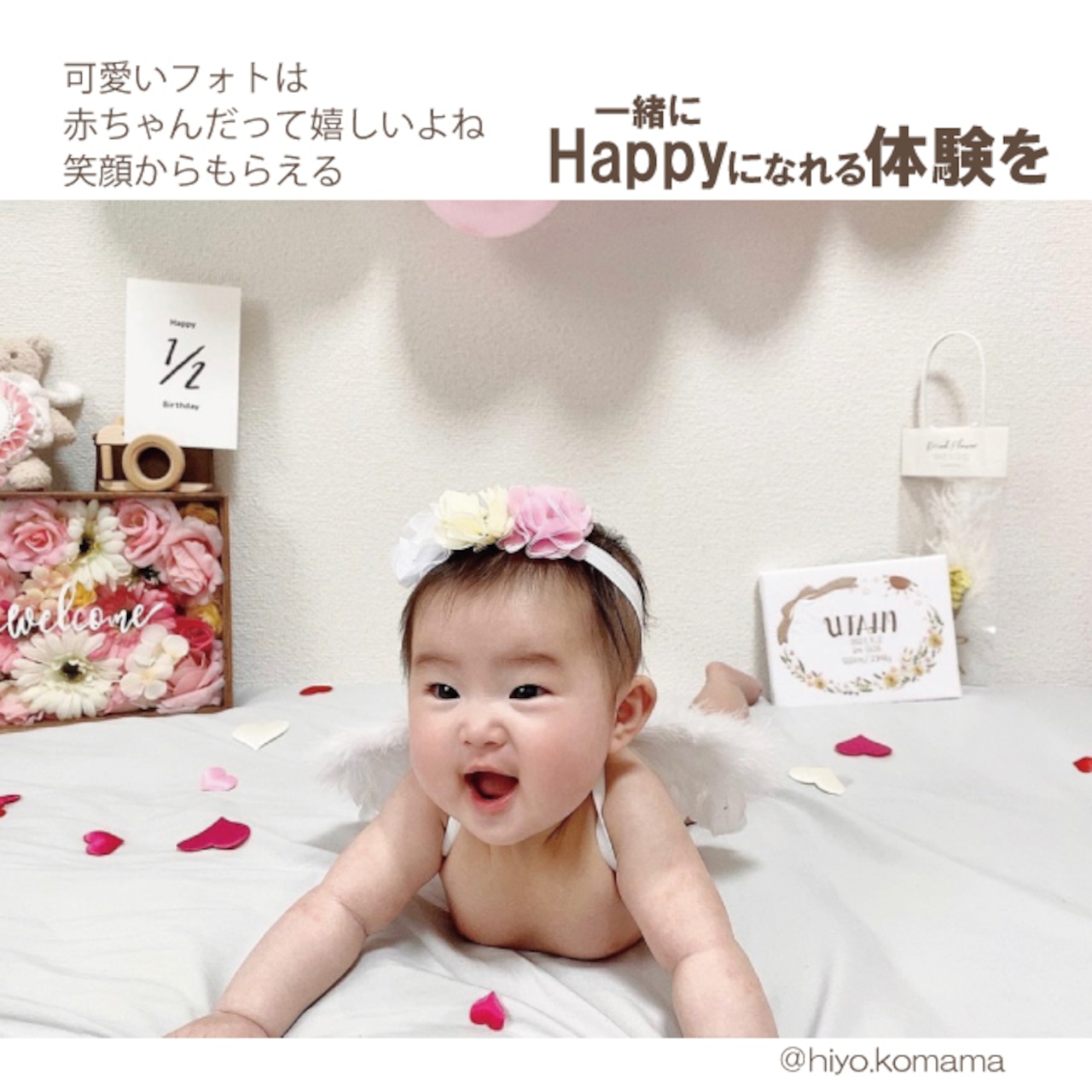 ハーフバースデー記念に「天使ショット」が大注目!ふわふわの羽とぷりぷりなおしりで1 2を表現たまひよ。