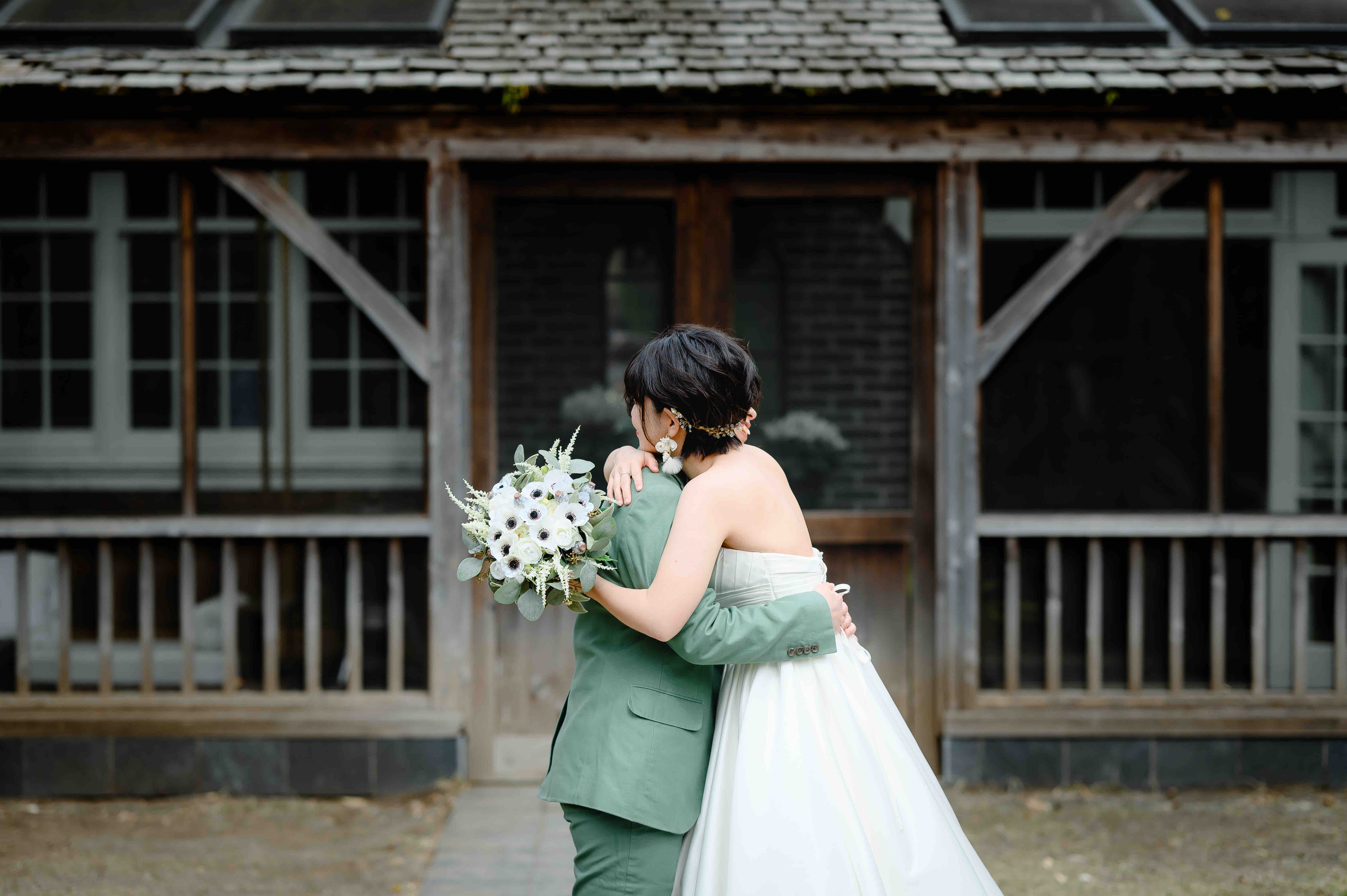 自分たちらしくいられる衣装で二人の門出を祝った日 Xジェンダーカップルのウェディングフォト。