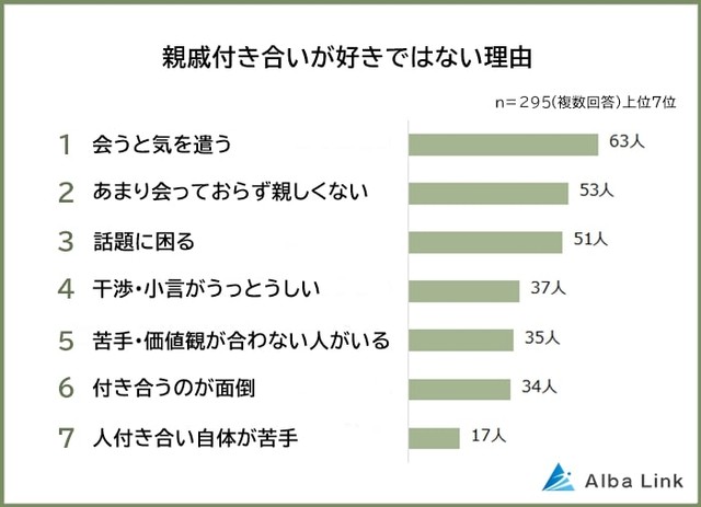 親戚付き合い、6割超が必要と答えるも 「好きではない」理由は 2位「親しくないから」、3位「話題に困る」まいどなニュース。