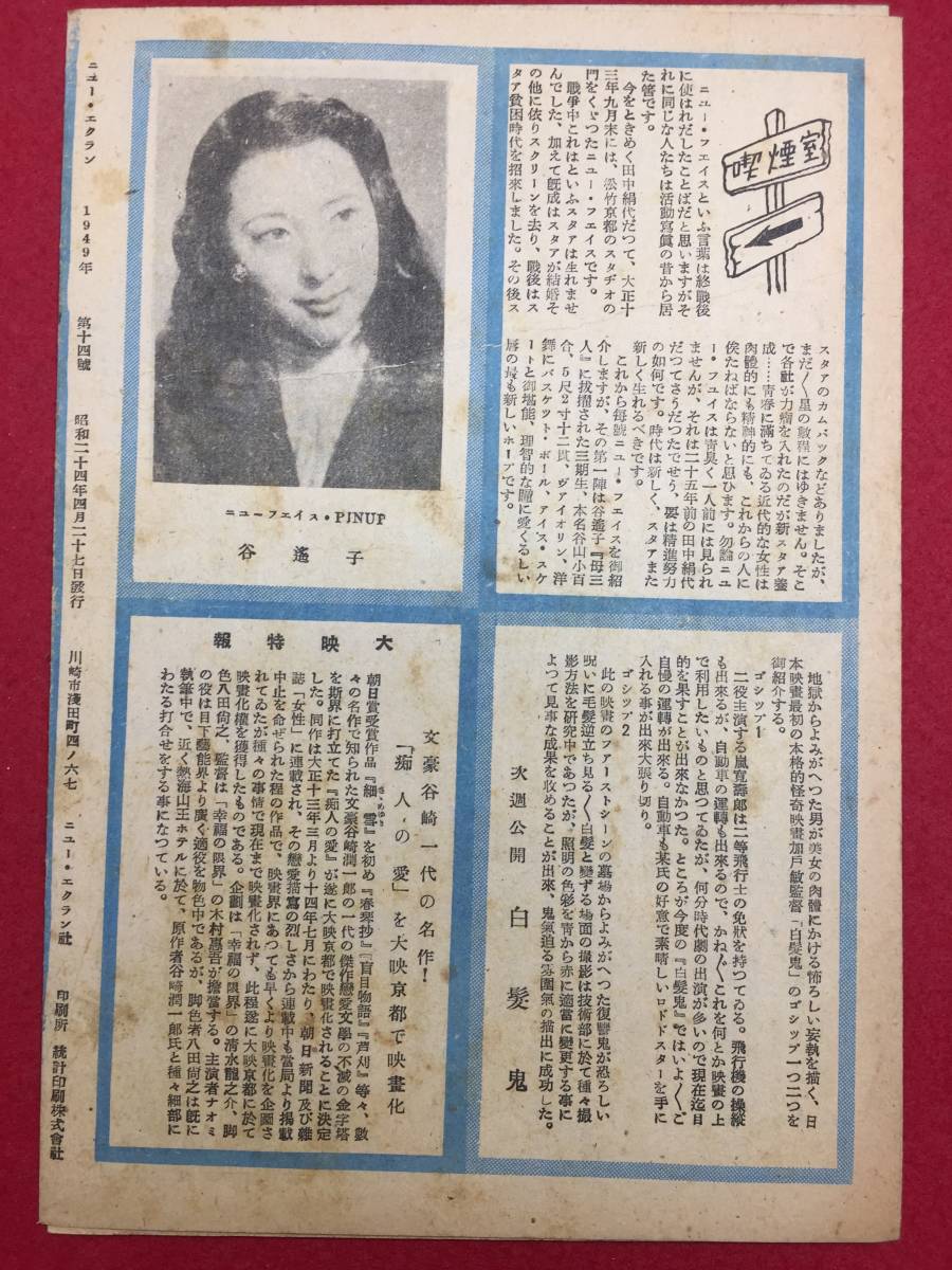 映画ファン 昭和24年8月号 表紙・三條美紀 高峰三枝子・山口淑子・三船敏郎古本、中古本、古書籍の通販は「日本の古本屋」日本の古本屋。