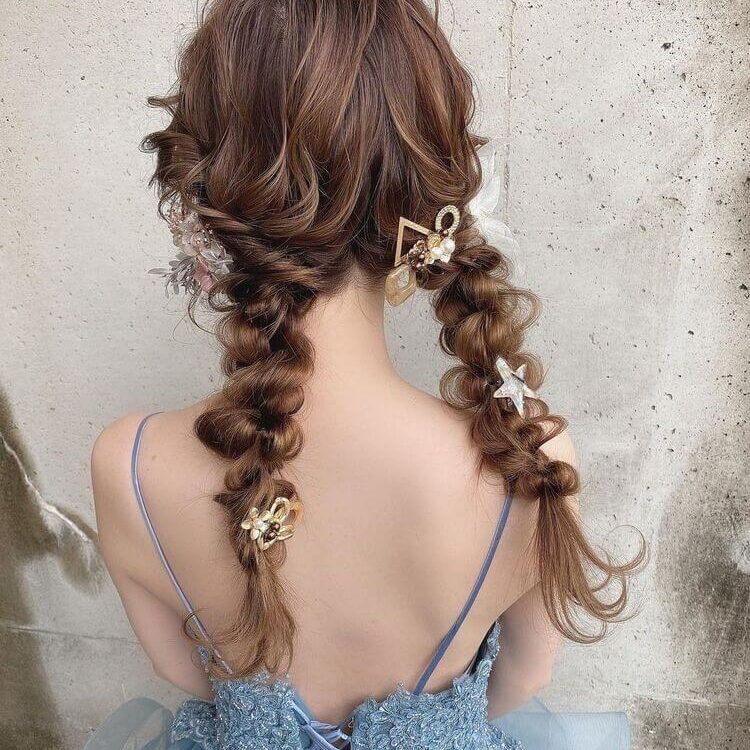 美しいツインアレンジのヘアスタイル💖結婚式やライブに最適。