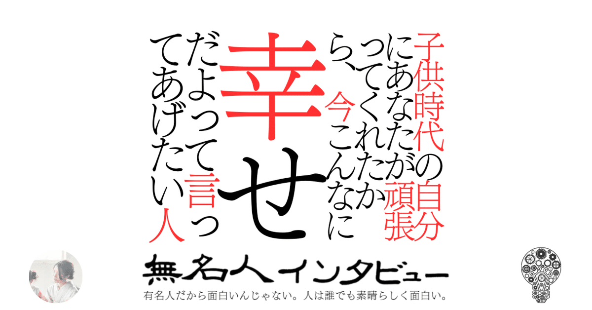 子供時代の自分にあなたが頑張ってくれたから、今こんなに幸せだよって言ってあげたい人無名人インタビュ。