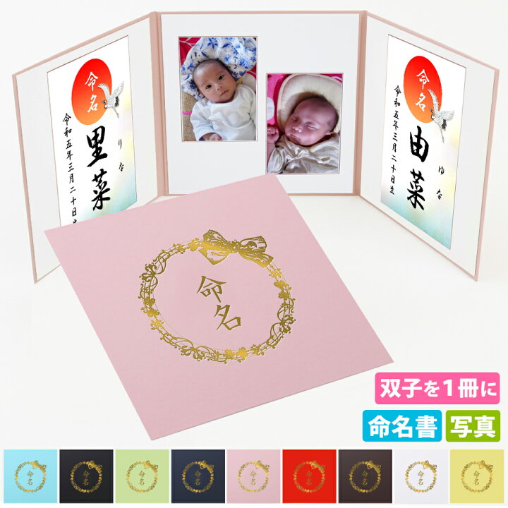 楽天市場 命名書 双子 台紙 赤ちゃん 写真 お名前を二人一緒に 双子 りぼん ツインズ おすすめ 人気 かわいい 手作り 飾る 内祝い赤ちゃん命名書台紙 出産祝い 記念品 命名紙 名づけ インク 祖父母 プレゼント 自分で書く オーダー 代筆 用紙 お七夜 メイメイ 日本製。