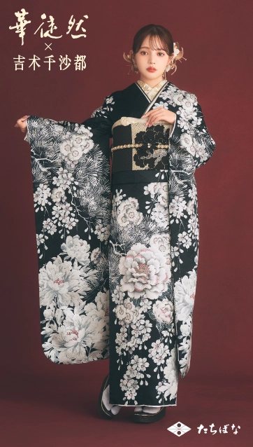 華徒然 × 吉木千沙都”の振袖-黒成人記念の新作振袖ご。