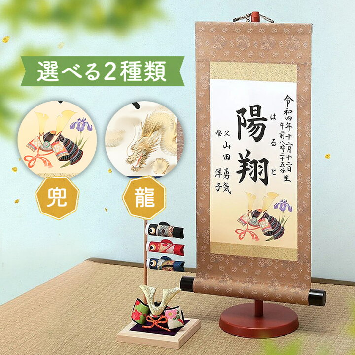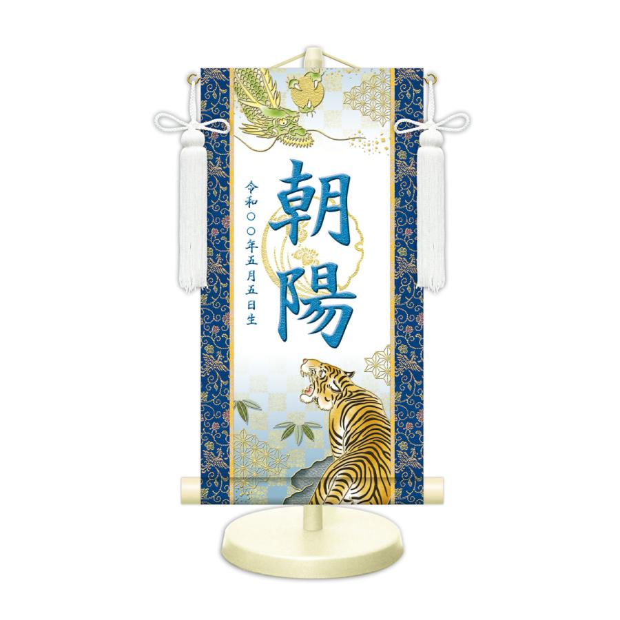 名前旗 金襴名前掛軸 開運龍虎 白開運菖蒲紋入り 専用飾りスタンド付 飾り房付 節句 掛け軸 名前 命名掛軸 五月人形 男の子 端午の節句飾り名前旗?命名飾り 開運龍虎 白 小 モダン友禅 金襴 開運。