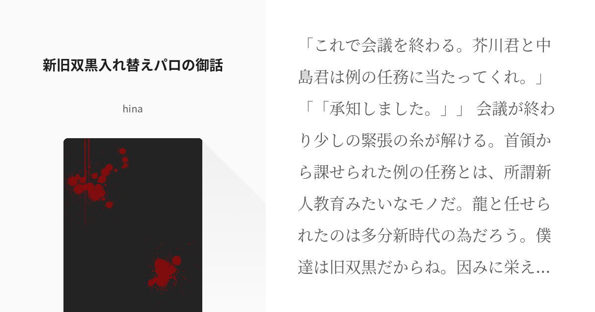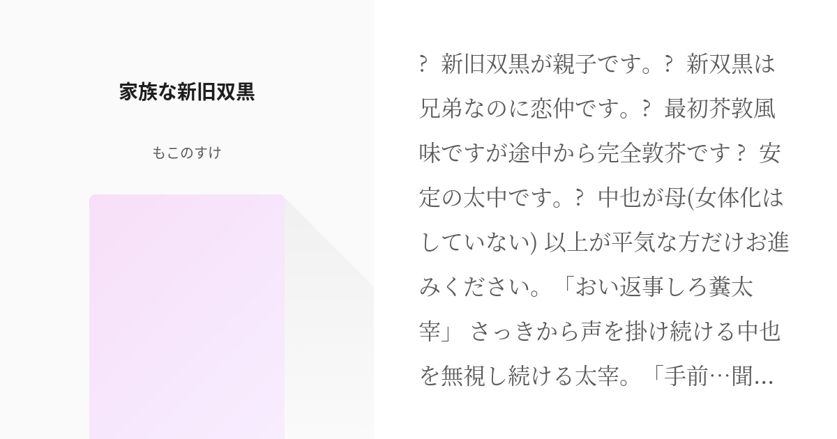 2 家族な新旧双黒家族な新旧双黒 - もこのすけの小説シリーズ - pixiv。