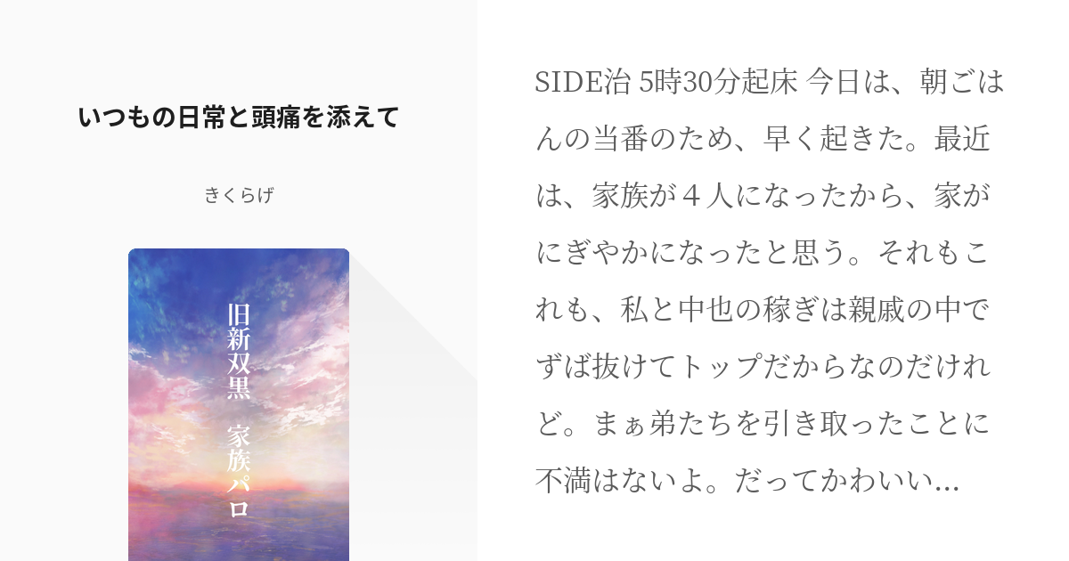 2 いつもの日常と頭痛を添えて旧新双黒 家族パロ - きくらげの小説シリーズ - pixiv。