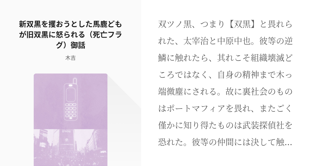 1 新双黒を攫おうとした馬鹿どもが旧双黒に怒られる 死亡フラグ 御話新旧双黒詰め - 木吉の小説 - pixiv。