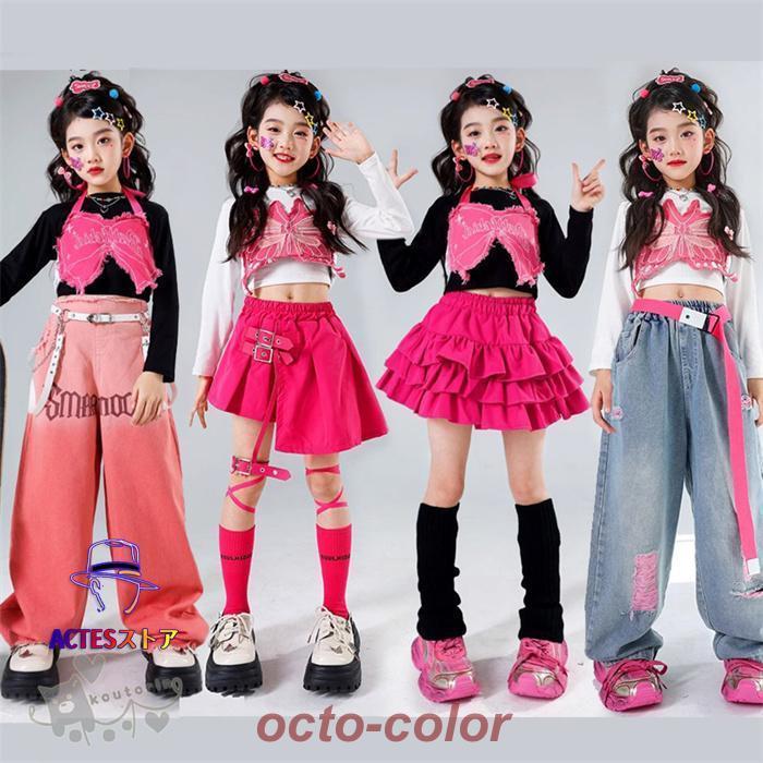 キッズダンス衣装 セットアップ ガールズ ヒップホップ 衣装 K-POP 韓国 子供ダンス服 派手 へそ出し トップス パンツ スカート 黒 ピンクLINEブランドカタログ。