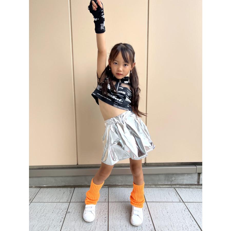 シルバー スカート 銀 キッズダンス衣装 K-POP 韓国 ガールズヒップホップ チアダンス ダンスウェア 子供ダンス服 派手 キラキラ ダンス衣装キッズ。