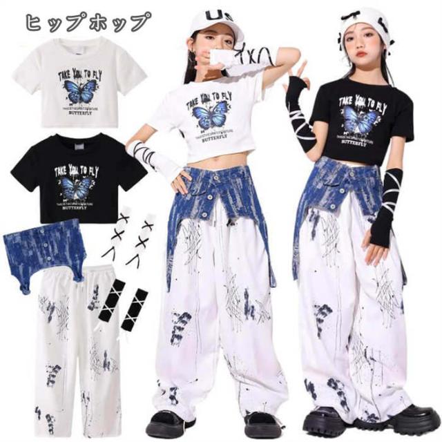キッズ ダンス衣装 子供服 ヒップホップ 半袖 パンツ HIPHOP 女の子 ダンス発表会。