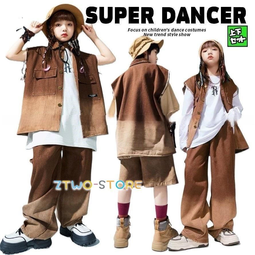 HIPHOP 夏 キッズダンス衣装 ヒップホップ ダンス衣装 トップス パンツ 子供服 韓国 ステージ衣装 キッズ ジャズダンス ダンスウェア 練習着体操服。