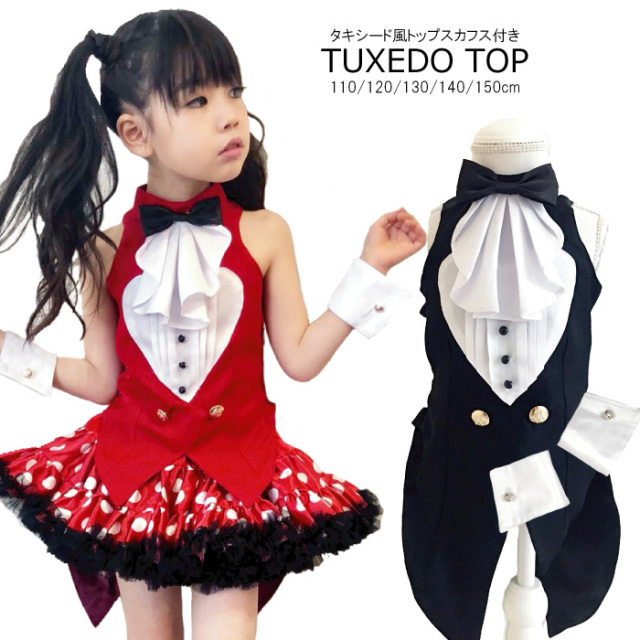 子供服 ダンス衣装 子供 ダンス 衣装 黒 赤 キッズ こども 子供 お遊戯会 ガールズ 衣装 レッド ブラック タキシードトップ 全2色 110cm120cm 130cm 140cm 150cm 単品ならネコポス可能。