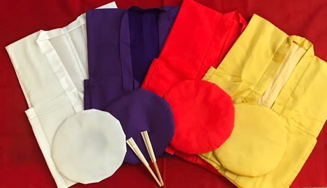 赤・紫・黄色・賀寿のお祝いちゃんちゃんこ。
