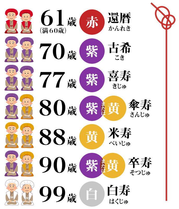 長寿祝いの色 一覧 還暦・古希・喜寿・傘寿・米寿・卒寿・白寿よくある質問おしゃれな神戸のお花屋さんグラウンドのコラム。