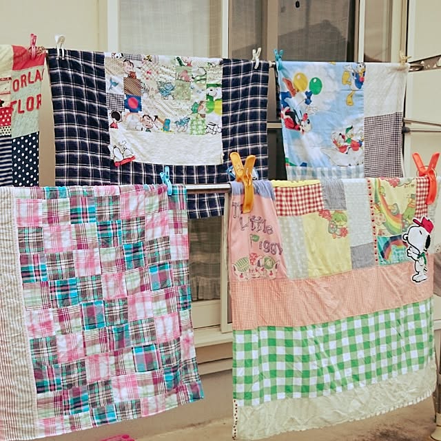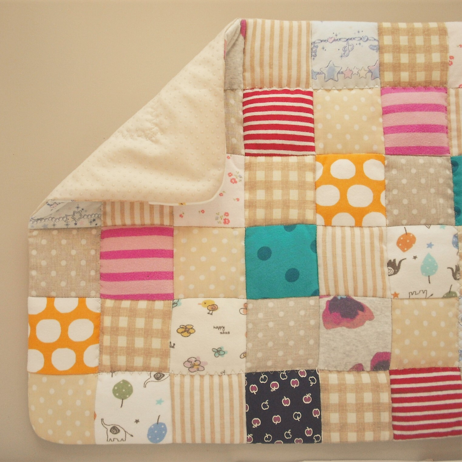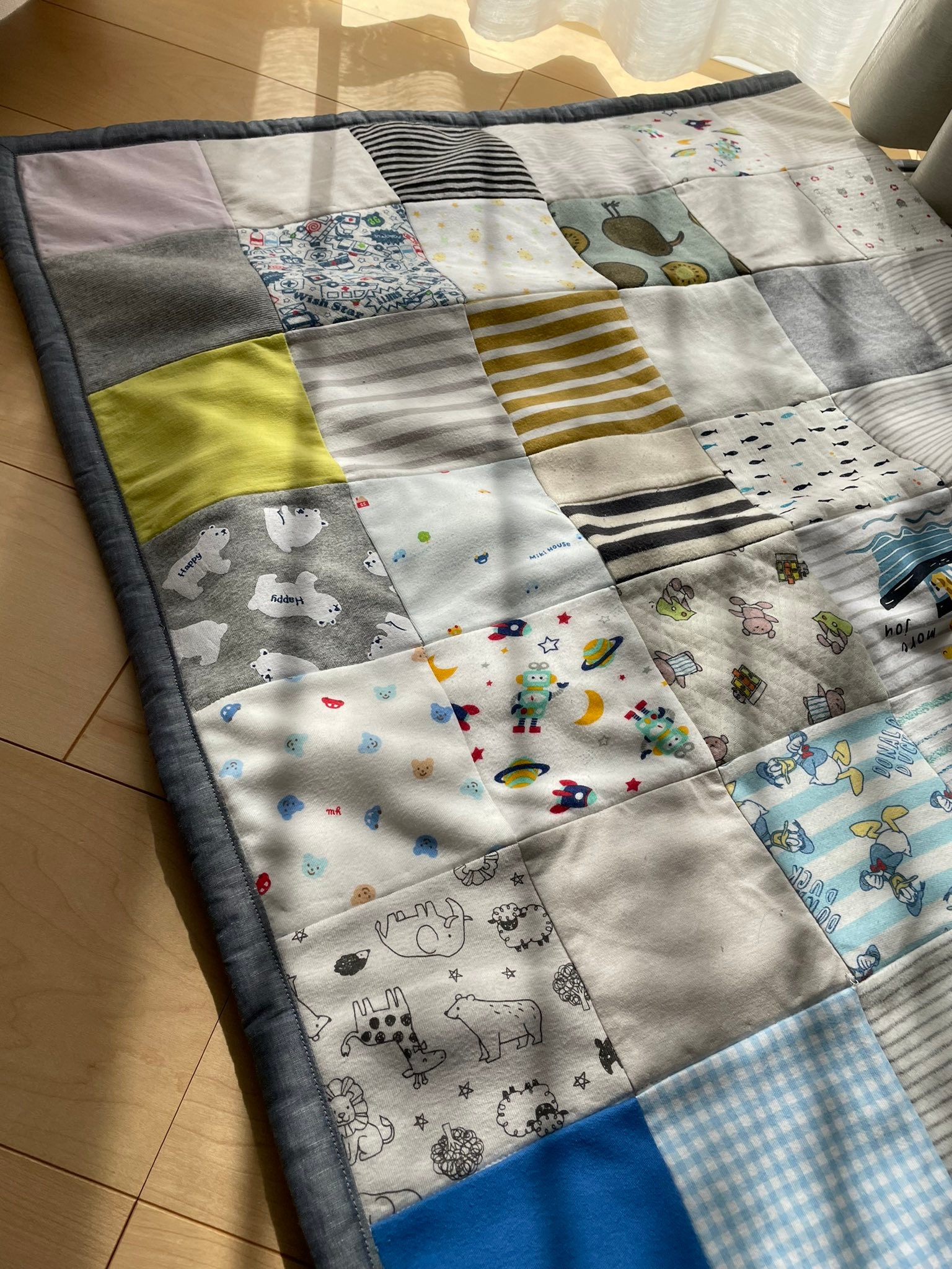 はぎれでもOK! 思い出のベビー服で作るリメイクパッチワークブランケット作り方patchwork bedspreadベビーブランケット パッチワーク はぎれ活用 アップサイクル。