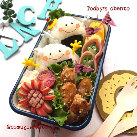 女の子と男の子のお顔お弁当 年中さんお弁当丘街diary〜ロップイヤーとのまったりとした日常。