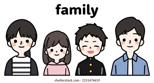 かわいい4人家族の手書きイラストのイラスト素材73512089- PIXTA。