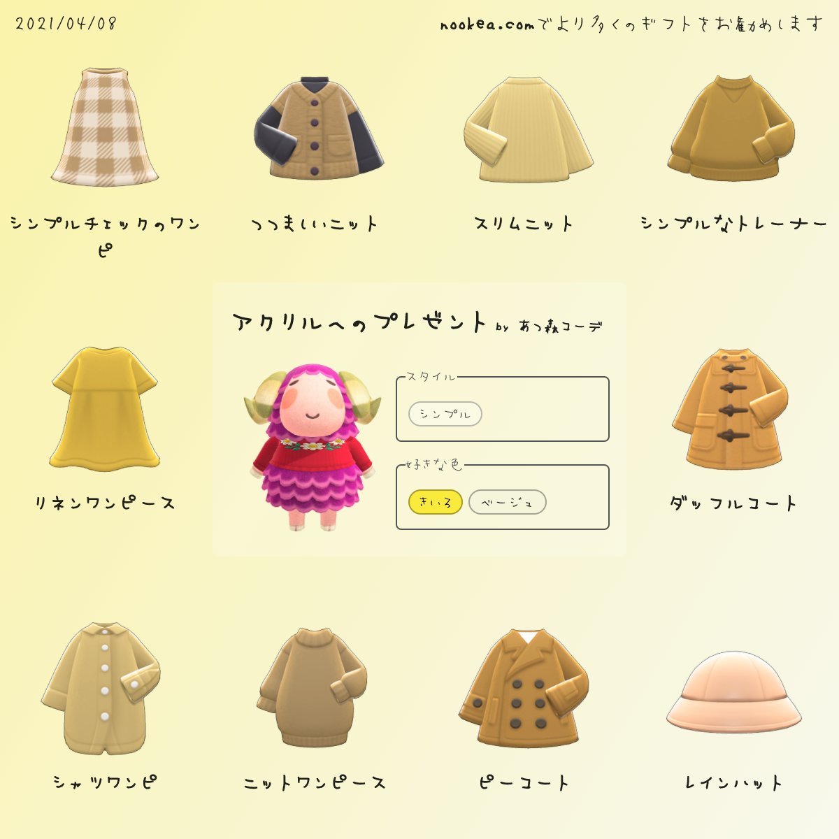 ペリーヌのポスターあつまれどうぶつの森あつ森コーデ。