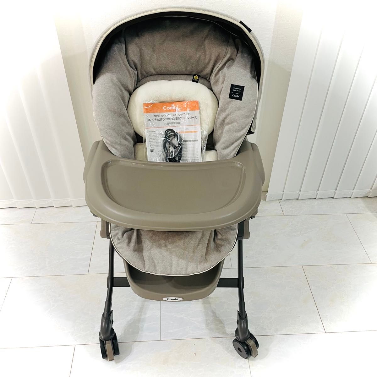 美品 おもちゃおまけ付き★コンビ ネムリラ BEDi おやすみドーム ベージュ Combi ハイローチェア AUTO SWING。