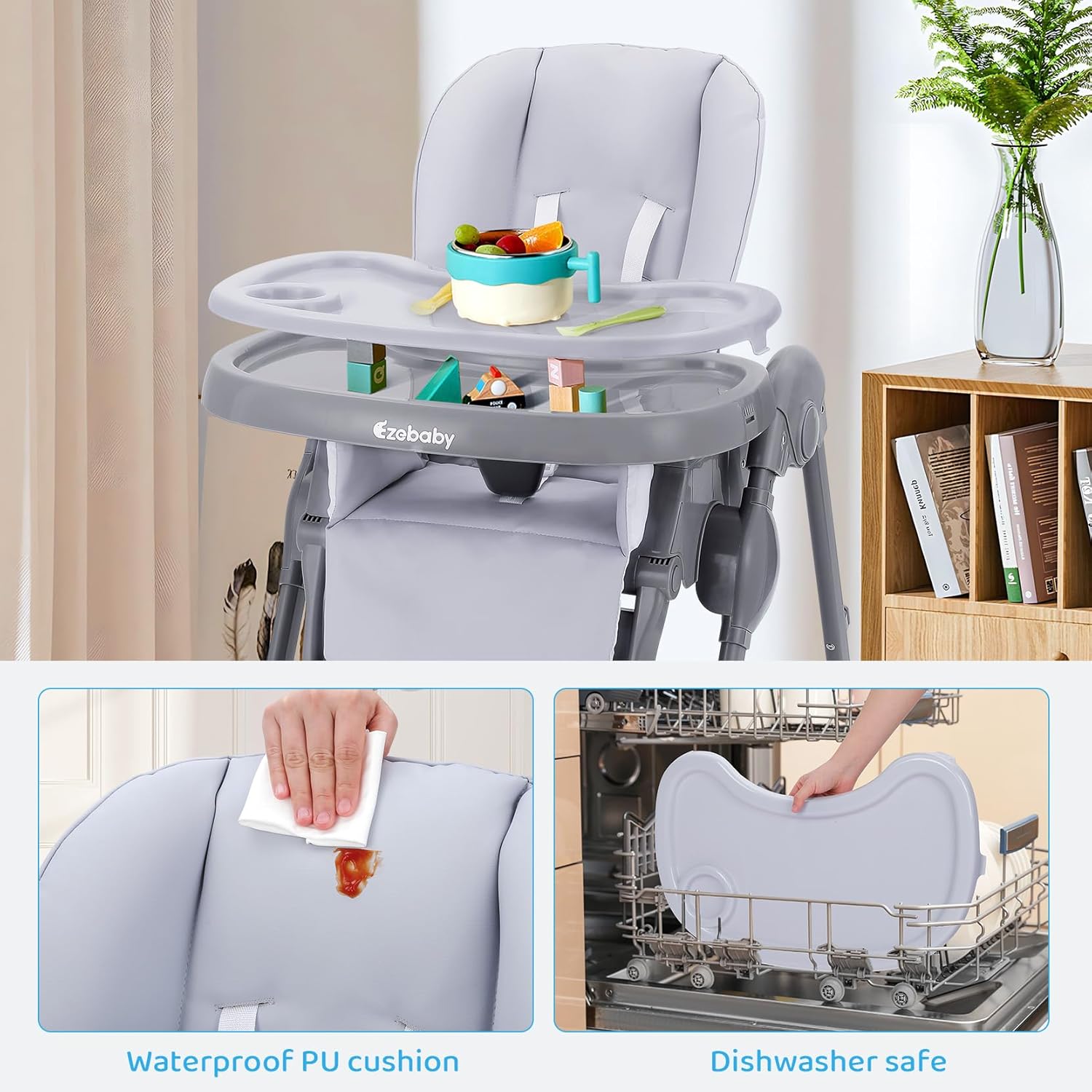 Ezebaby ハイチェア おもちゃラック付き - グレー 2 ホワイトレーベル ネムリラ AUTO SWING BEDi Long スリープシェルEG コンビ ハイローチェア・ベビーラックのレンタル-点検清掃済・安心保証ありベビー用品レンタルのベビレンタ。