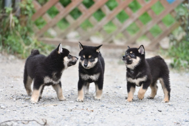 今日は何して遊ぶ? 3匹の黒柴の子犬は生後51日目です。 2022年8月25日柴犬。