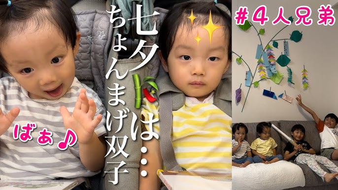 男の子4人 手作り七夕🎋自ら志願→初めて髪結んだ双子2歳5ヶ月 - YouTube。