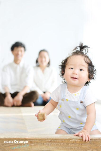 1歳男の子のバースデーフォト宝塚市の写真館スタジオオレンジ・モンテシート。