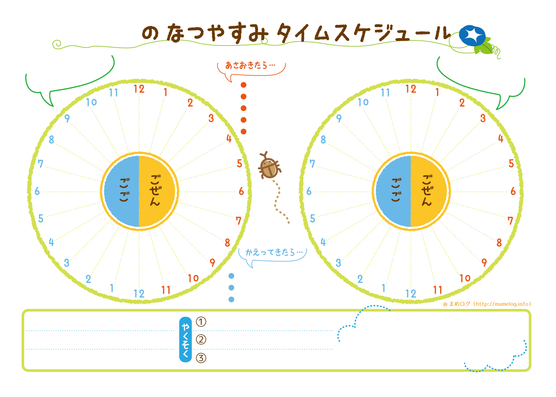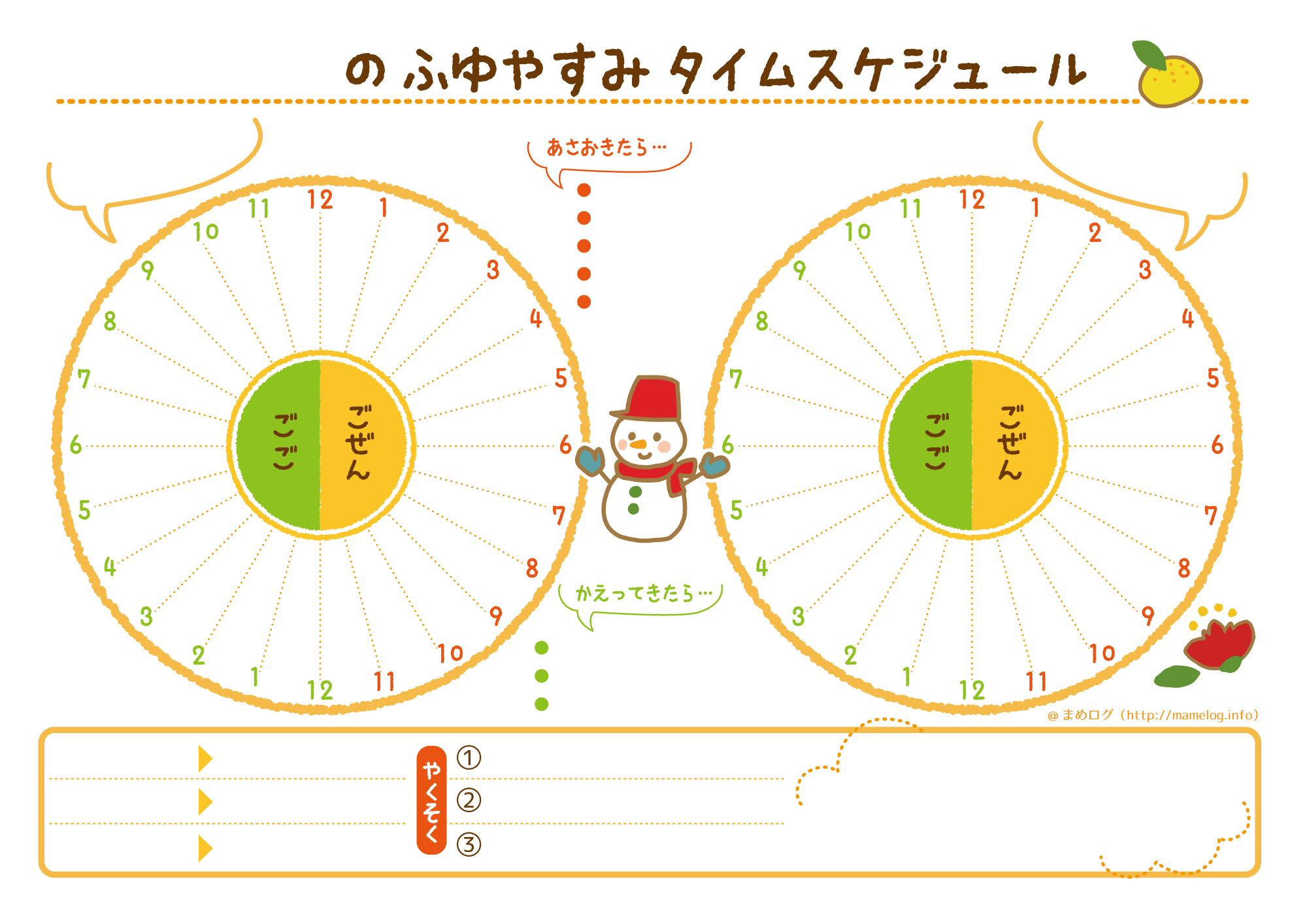 冬休み 2パターンの予定が立てられるタイムスケジュール表! 無料ダウンロードOKまめログ。