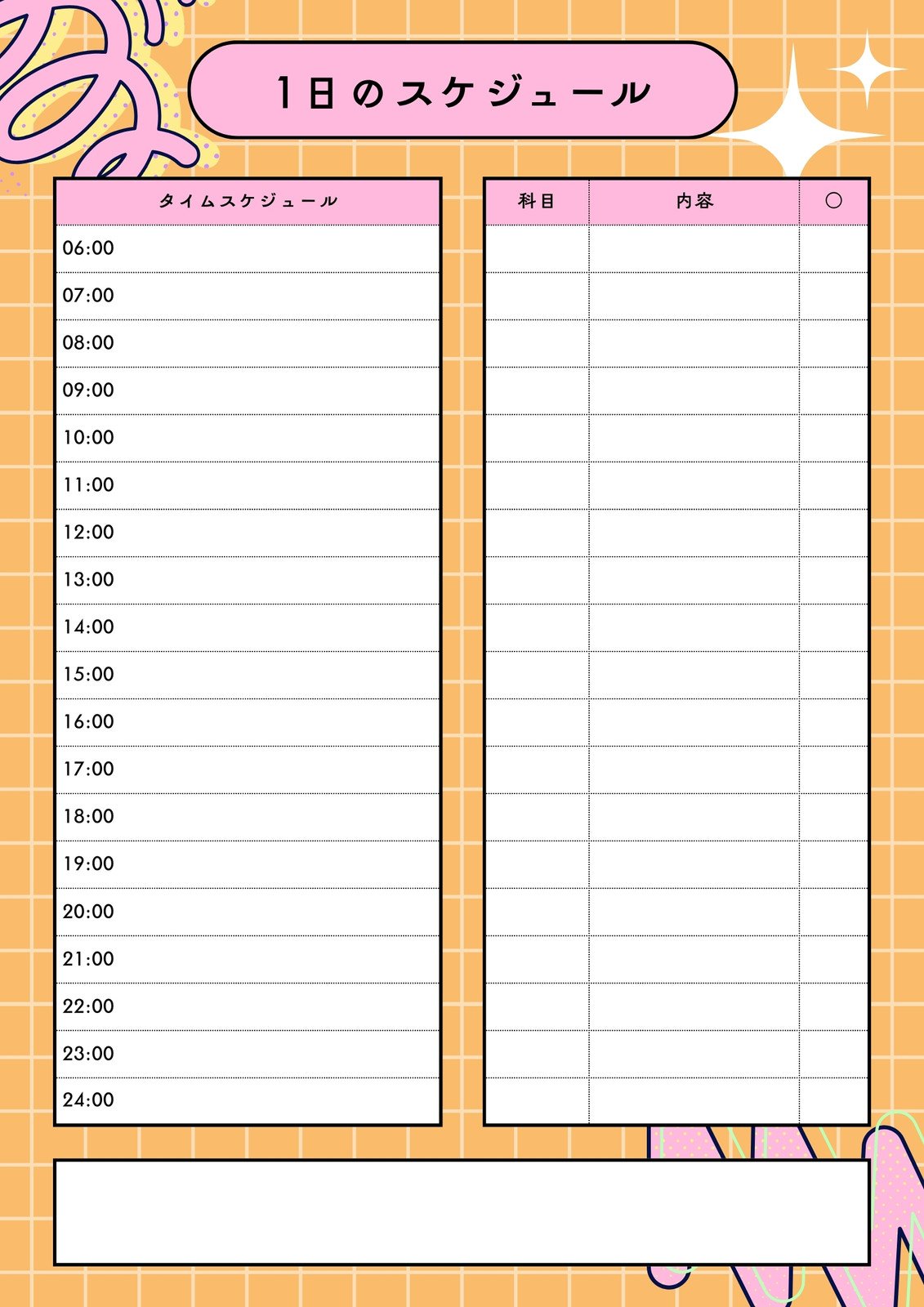 時間管理に便利な1日のタイムスケジュール表!かわいいイラストデザインテンプレートイラストボックス「プレミアム」テンプレート。