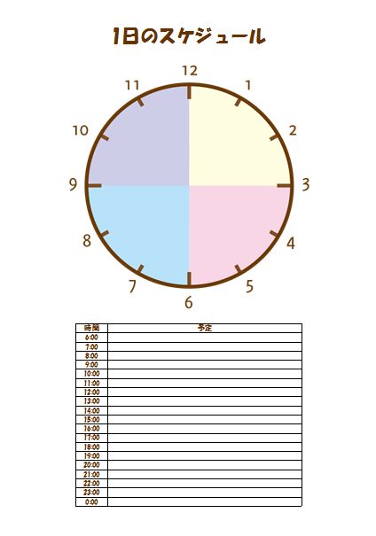 12時間 生活スケジュール表 円無料ダウンロード・印刷ちびむすカレンダ。