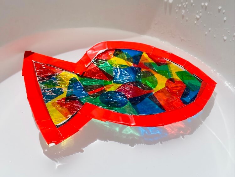 夏の製作 作って遊べるカラフル魚~水遊び・影遊びを楽しもう~。