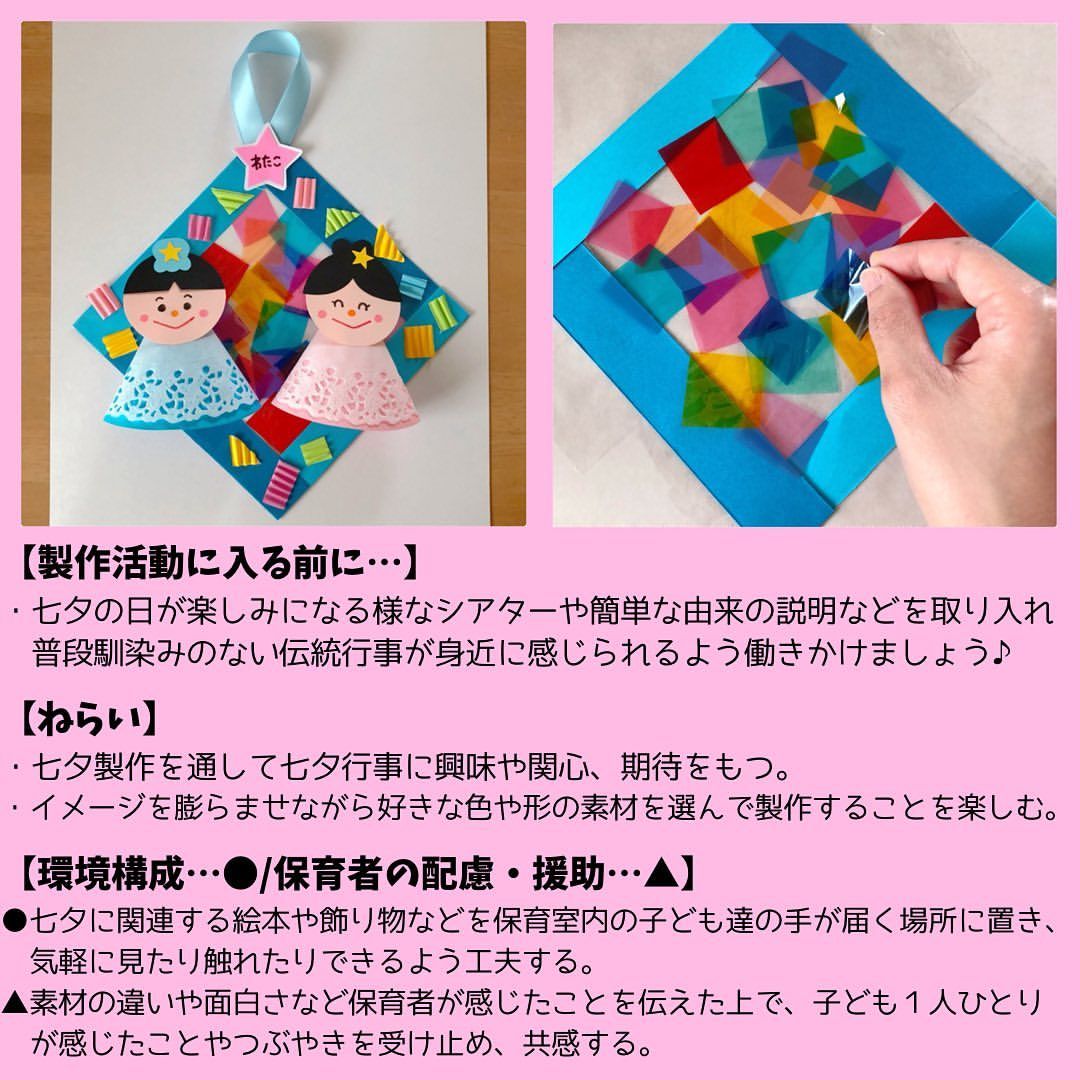 製作 星のサンキャッチャー . サンキャッチャーの吊るし飾りです꙳☆*゚ . 子どもたちがカラーセロハンを切ると いろんな大きさ形ができるのでサンキャッチャーにも個性が出ます💛 . 七夕製作にもぜひ🎋 @pierrot_sensei。