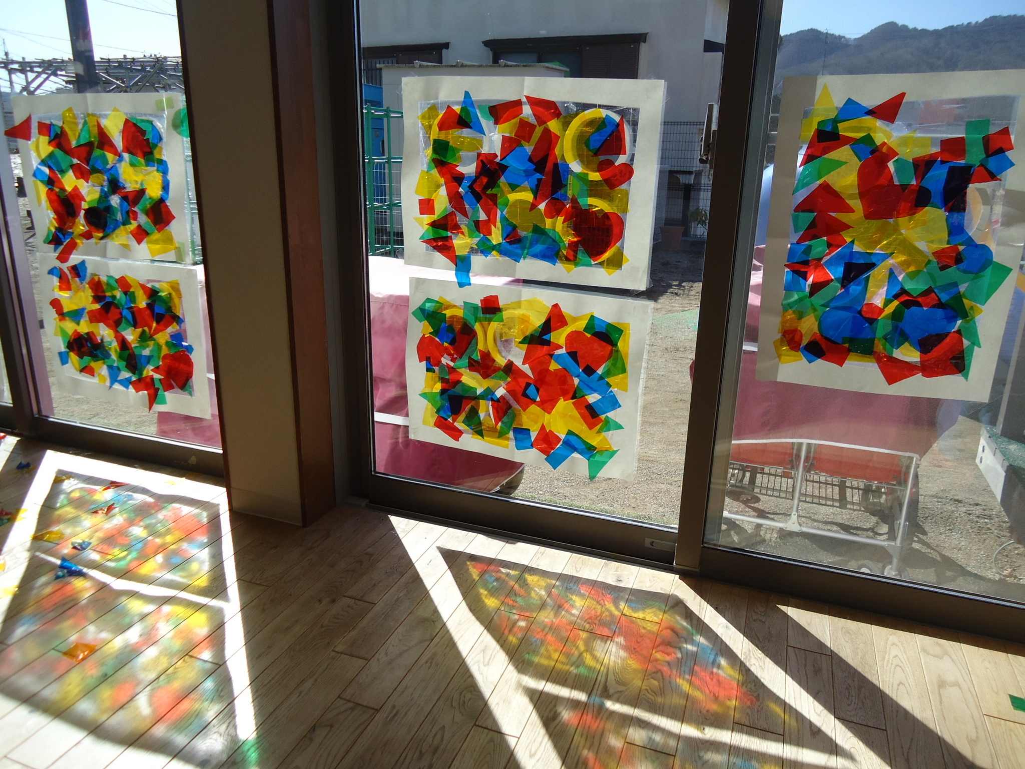 簡単!汚れない!でもキレイ!カラーセロハンで窓にアートを作ろう!佐世保 子育てサロン*どんぐりのおうち ベビーサインとぐちゃぐちゃ遊び。