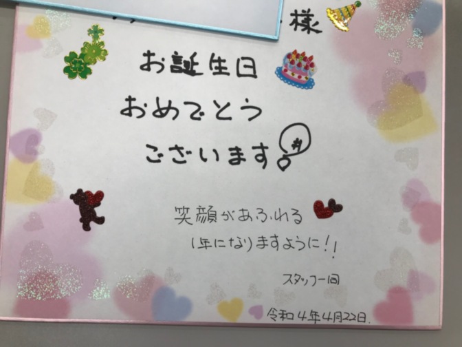お誕生日カード アルファリビング松山よつば循環器科クリニック前 スタッフブログあなぶきの介護。