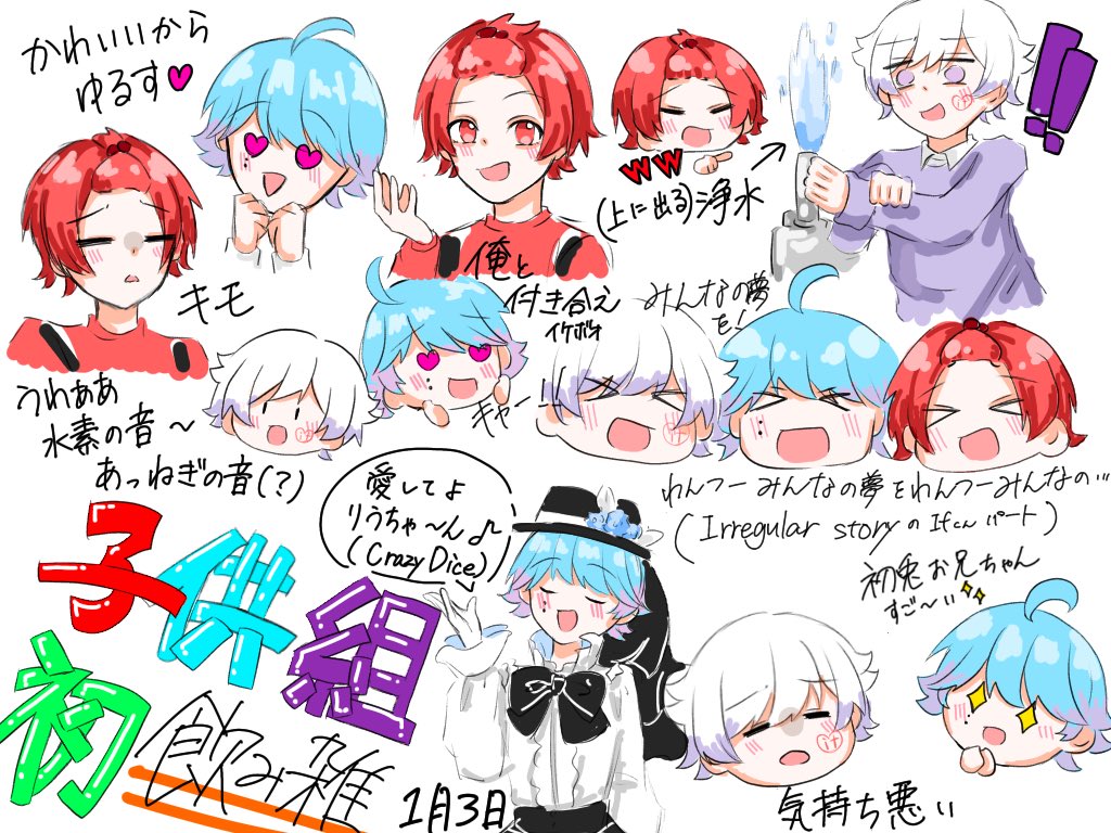 純汰 on X: "~FFさんの推し描きたい企画①~落書き手癖100%なので温かい目で見てくださいいれいすさんから子供組の御三方を描かせていただきました😊リクエストくださった方、ありがとうございます! https:t.co xryFnS35Y8"X。