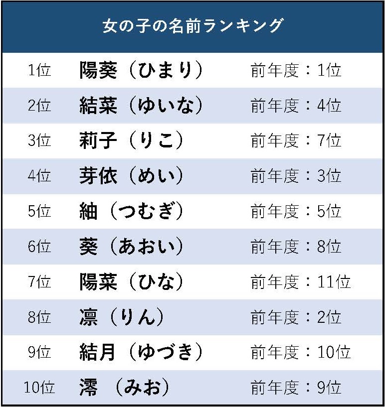 女の子の名前1位は「陽葵」 ジェンダーレス名も人気 - 日本経済新聞。