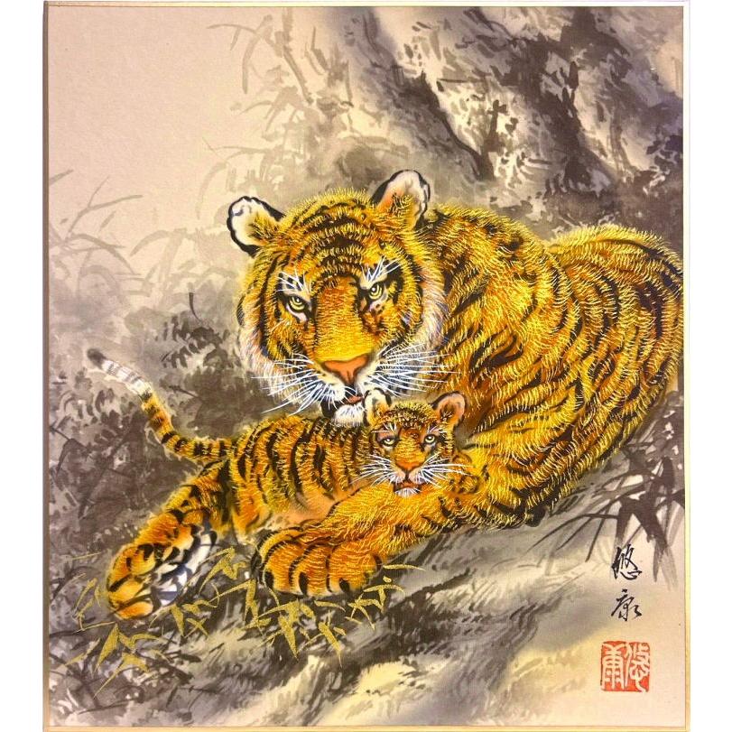 松井悠康 干支色紙 : 寅 「 親子虎 」 色紙絵絵画 日本画 とら トラ 魔除け 十二支 動物 風水 縁起 : 内田画廊 - 通販 -Yahoo!ショッピング。