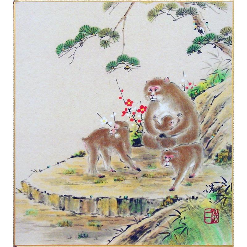 佐藤浩二 干支色紙:申 『平安申』 色紙絵 絵画 日本画 猿 親子 ネコポス メール便 : 内田画廊 - 通販 - Yahoo!ショッピング。