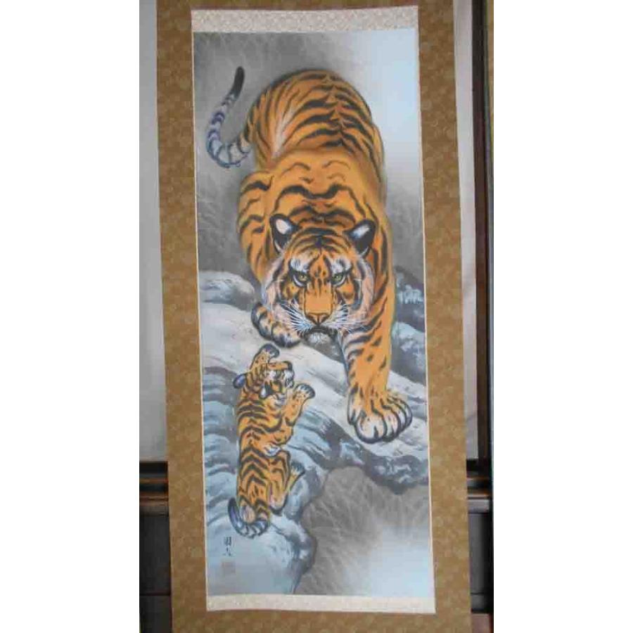 掛け軸親子虎美術名典掲載作家星野国光掛軸全国送料無料。