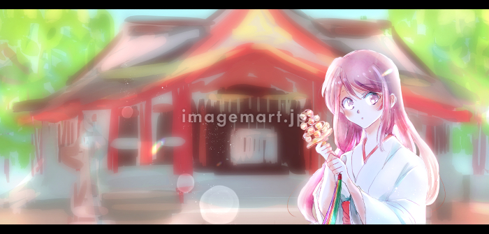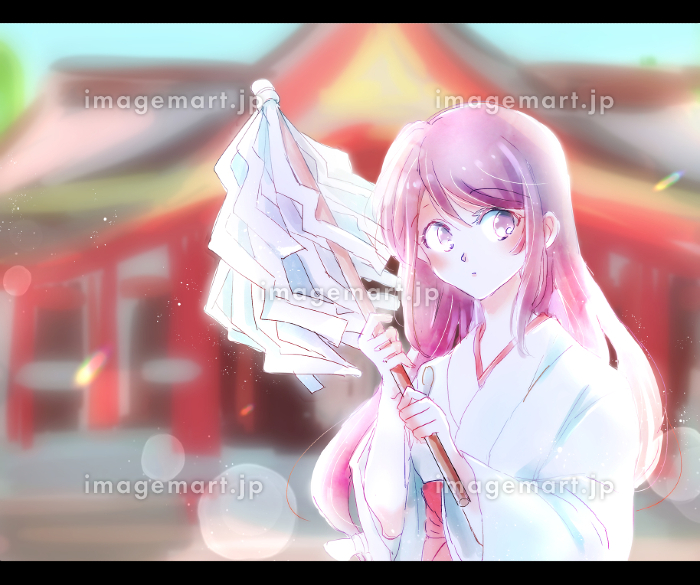 御幣を持っている巫女さん 背景神社のイラスト素材198645070- イメージマート。