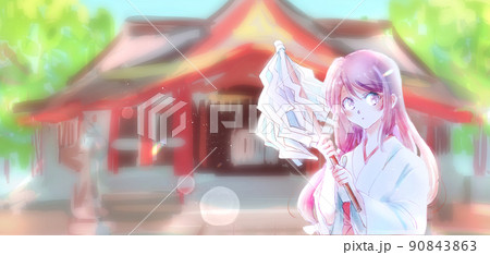 御幣を持っている巫女さん 背景神社のイラスト素材90843863- PIXTA。
