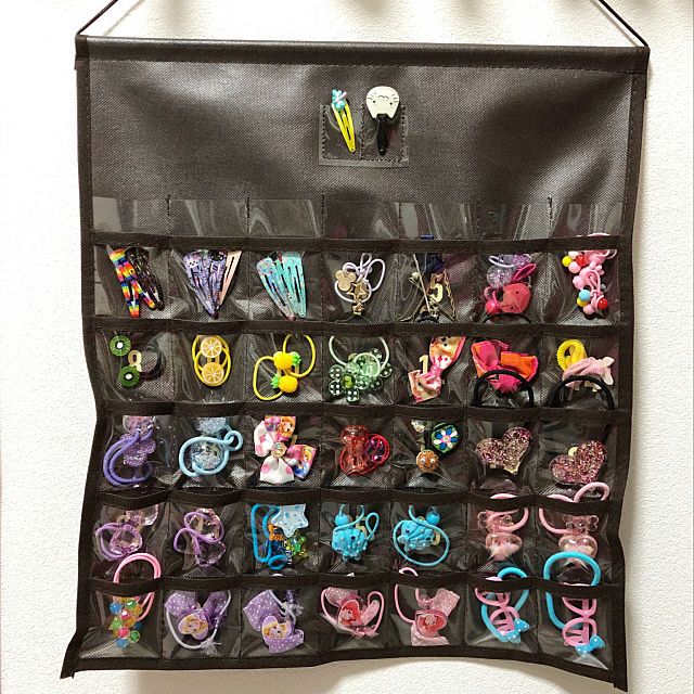 片づけに追われる日々を卒業しよう 子どものヘアゴム収納。 ➖➖➖➖➖➖➖➖➖➖ 子どものヘアゴムはセリアのウォールポケットに収納。 毎朝、バタバタしながら子どもの髪を結ぶのでヘアゴムとくしがサッと取り出せるように。 ヘアゴムを選びやすく、サッと。