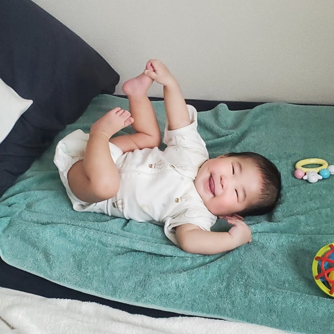 赤ちゃん「なんやこれ?」 生後4カ月でついに自分の足を発見した赤ちゃん、パタパタ動かし見入るしぐさが愛らしい 1 2ねとらぼ。