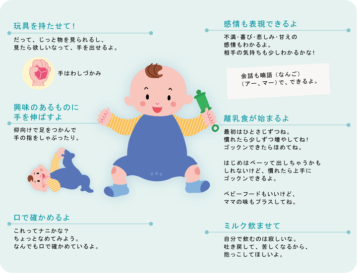 5か月から6か月の赤ちゃん~欲しいものに手を伸ばすよかすみがうら市公式ホームページ。