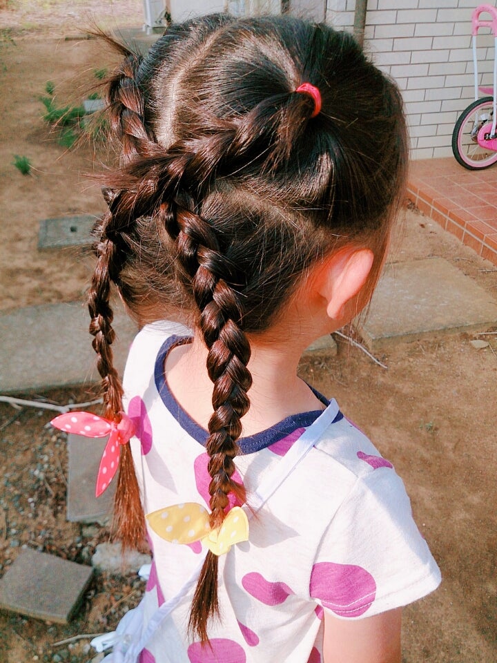 太編み込みのヘアアレンジ♡女の子のママ必見!子供のヘアアレンジ♡。