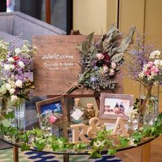 🏷ウェルカムスペース 式場はいってすぐのウェルカムスペース🌿 自分たちらしさをということでね、 もうほぼ、わたしの家でした🧺 笑ハマちゃんに婚約記念にもらったイラストも 飾らせてもらったよ🕊 @yuyahamada_illust ウェルカムボードはminneで見つけた。