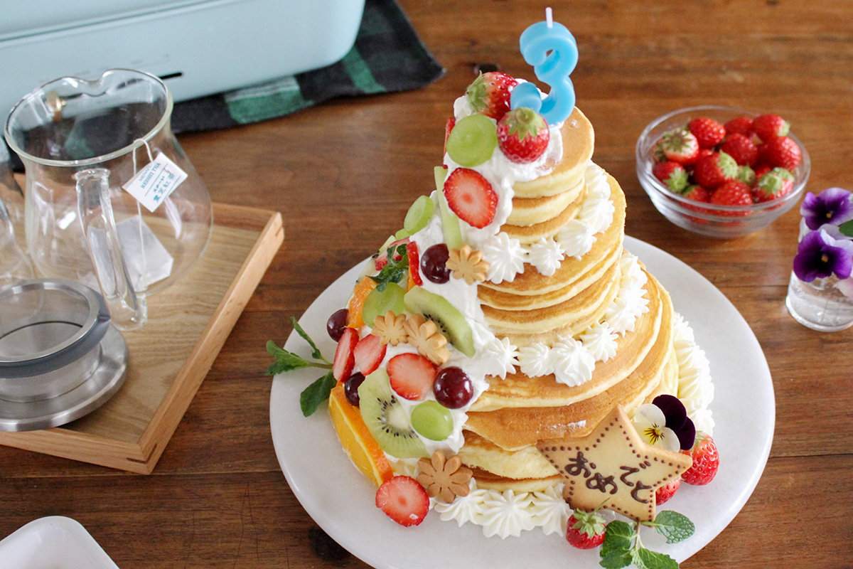 あゆのこどもごはん 愛情たっぷり!ホットケーキで手作りバースデーケーキおうちごはん。