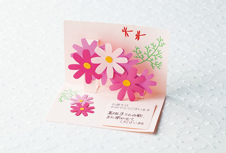 お誕生日カード コスモスの花幸 高 齢者サポーター あきやまかずえ。