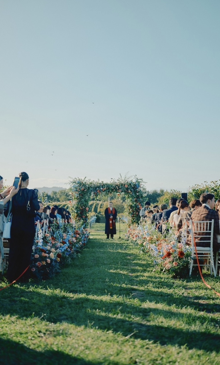 まずは「挙式」から。 昨日の投稿でお色直し投稿予告したけど 結婚式の流れの順を追って投稿しようと思う!見てくれてるファンのみんなにも参加してるかのように楽しんでもらいたい! 挙式は憧れの葡萄畑で。 どうしても緑の中で挙式をしたかったの。 そしてこの。